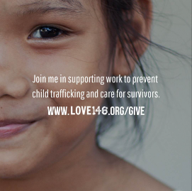 - Love146 ~ a U.S.-based 501 non-profit international anti-child trafficking organization that “journeys alongside children impacted by trafficking today and prevents the trafficking of children tomorrow.” (Source: Love146 Mission Page )